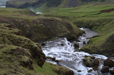 View over the Krossa River and BásarEnd of the trail at Skogafoss